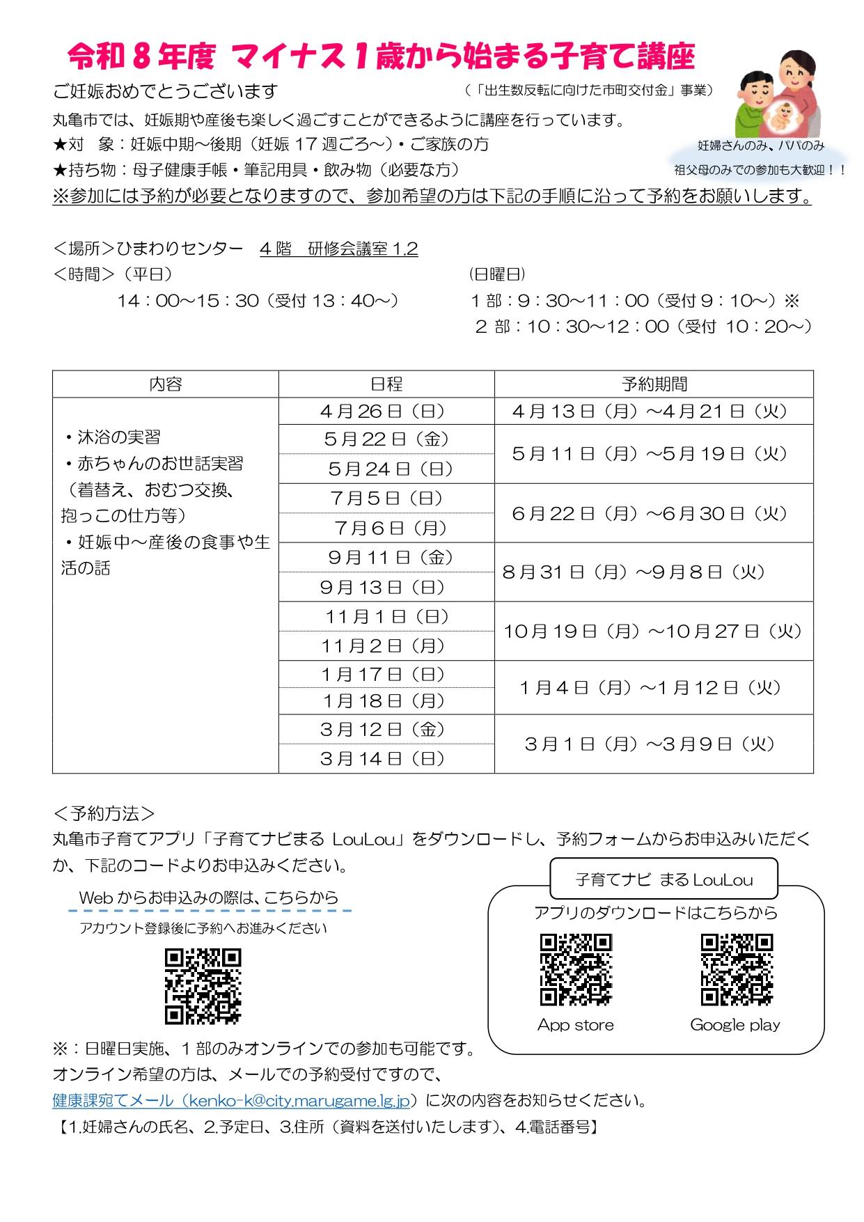 出産を迎える妊婦さんやご家族は様々な思いを抱かれていることと思います。丸亀市では妊娠期・産後も楽しく、安心して過ごすことができるように講座を行っています。詳細はホームページを確認ください。